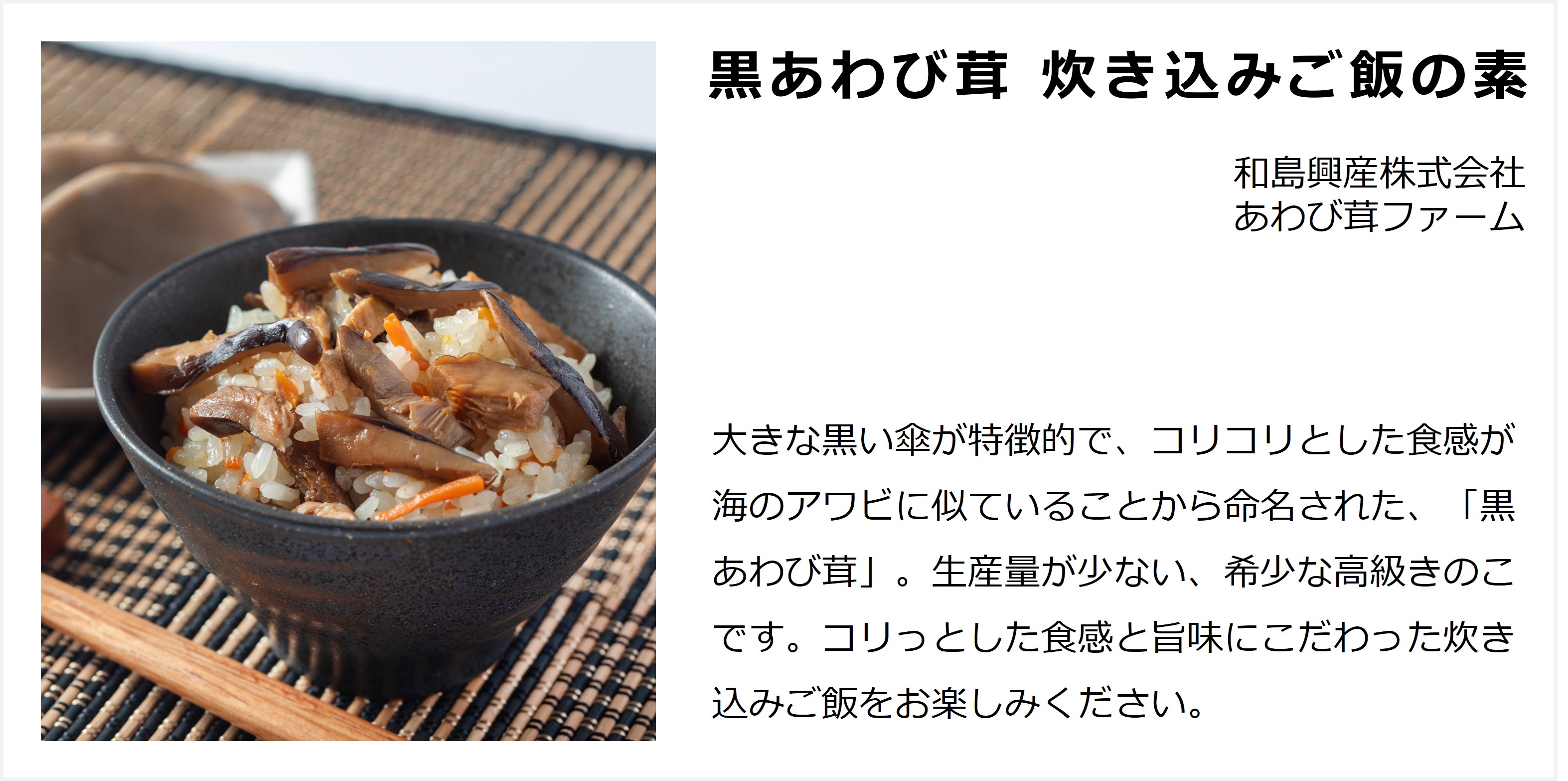 黒あわび茸 炊き込みご飯の素 |